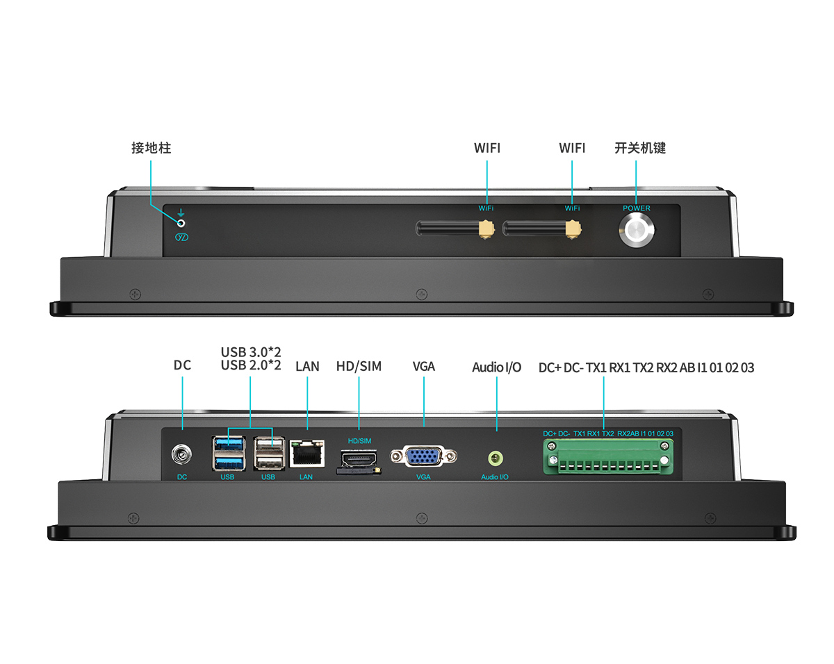 5、接口豐富,搭配高清顯示接口和多個(gè)COM接口、USB接口