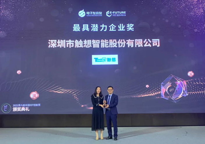 12月10日,在第六屆中國“IOT”創新獎頒獎晚會在深圳深鐵皇冠假日酒店舉辦,觸想智能奪得“最具潛力企業獎”。該獎項由知名的電子科技媒體電子發燒友主辦,旨在挖掘和表彰IOT行業中具有開拓精神、具有創新價值和深遠影響的杰出技術,以及過去一年中,被市場和行業用戶高度關注和認可的創新產品及企業。