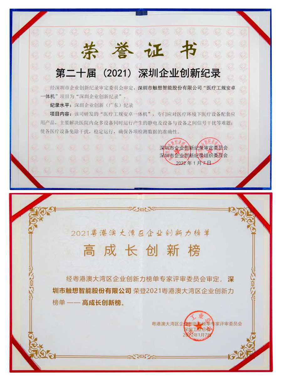 年末歲尾之際,觸想智能再次獲得榮譽,經深圳市企業創新紀錄組織委員委、粵港澳大灣區創新力榜單評審委員會評定:觸想智能獲得“第二十屆深圳企業創新紀錄”榮譽,同時入選“2021粵港澳大灣區企業創新榜單——高成長創新榜”。