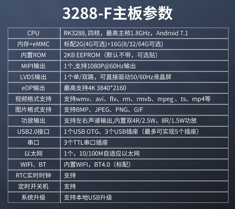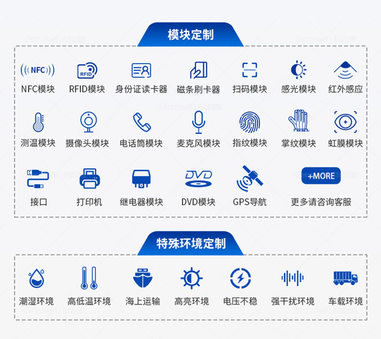 主板可更換JWS3399-F+4G+32G;更換讀卡器:身份證閱讀器、FRID讀卡器或其他指定讀卡器;內置一維碼、二維碼識別的條碼閱讀器(需將傳感器去掉),支持中國移動、聯通、電信全網通的4G模塊。