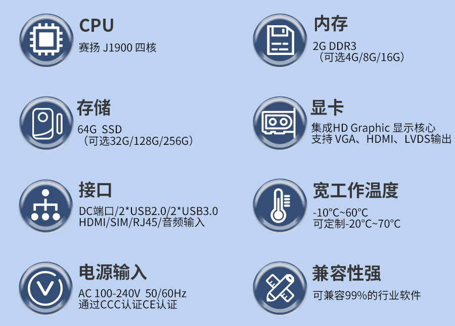 在與工業計算機的適配方面,首先是各種制圖軟件的兼容應用;其次是連續不斷的打標操作,在長時間穩定運行方面有較強性能支撐;同時在環境適應性方面,能夠適應激光打標機的工作環境,如振動、灰塵和電磁干擾等。