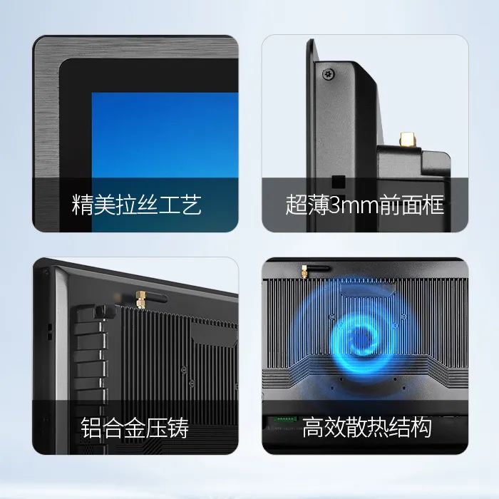 C款通用式系列產(chǎn)品,自帶光澤與金屬質(zhì)感,拋光工藝,簡(jiǎn)約時(shí)尚,10mm圓角窄邊框設(shè)計(jì),展現(xiàn)科技時(shí)尚美學(xué);支持桌面、壁掛、懸臂等多種安裝方式,適用于自動(dòng)化產(chǎn)線、人工智能、智慧醫(yī)療和物聯(lián)網(wǎng)等場(chǎng)景與領(lǐng)域。