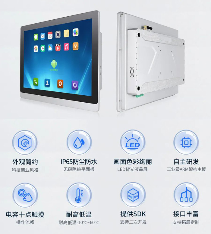 技術(shù)與性能升級(jí),不僅提高了安卓一體機(jī)C款嵌入式系列的應(yīng)用性,且拓寬了它的應(yīng)用領(lǐng)域,在主要工業(yè)應(yīng)用場(chǎng)景外,它還適配多種商業(yè)場(chǎng)景。
