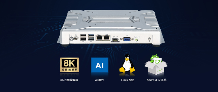 安卓工控機TPCIOT-500支持8K視頻編解碼,強大AI算力,可高效且精準完成海量操作指令。支持Android12、Linux系統,具有極強的兼容性與開源屬性。