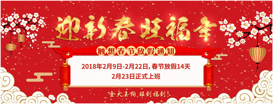 金雞辭舊歲,瑞犬迎春至。2018年春節(jié)假期將至,根據(jù)國家法定節(jié)假日相關(guān)規(guī)定,結(jié)合公司的實(shí)際情況,針對2018年春節(jié)放假時間為201829日—22日共放假14天,223日正式上班。(24-25日正常上班)