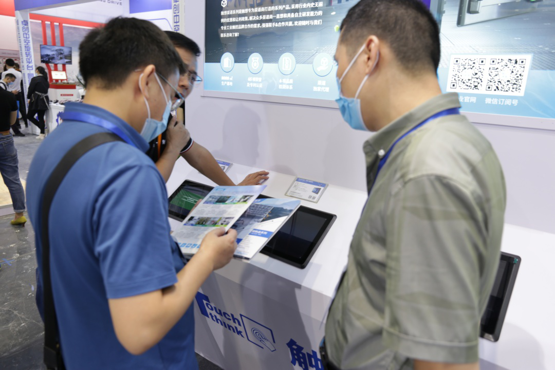 認(rèn)真研讀觸想新品四折頁(yè)的觀眾們,本次觸想展出了觸想5代、渠道系列、車載系列3大系列的新產(chǎn)品,根據(jù)應(yīng)用方向不同各有側(cè)重,但品質(zhì)和工藝都是非常有保障的。